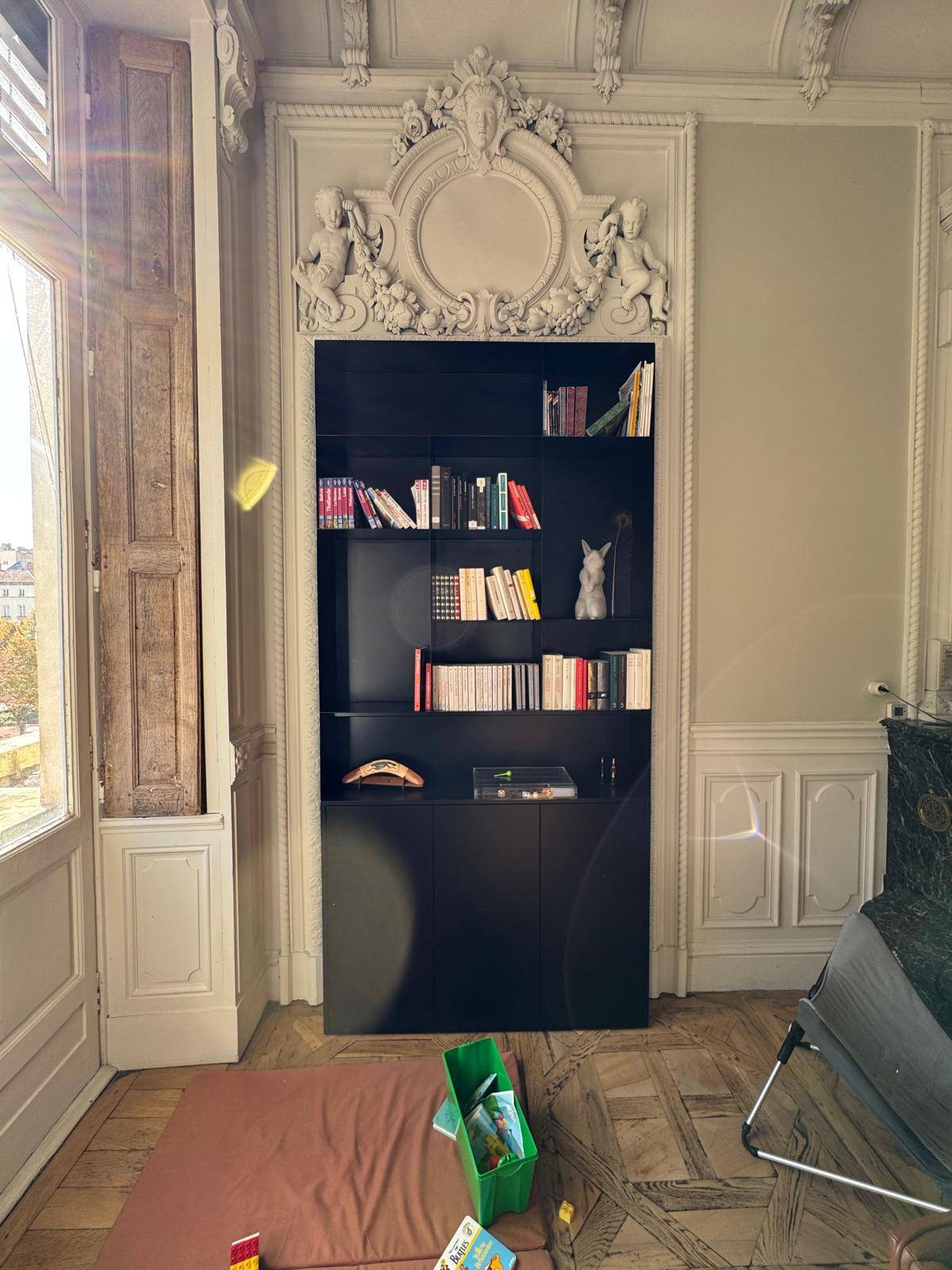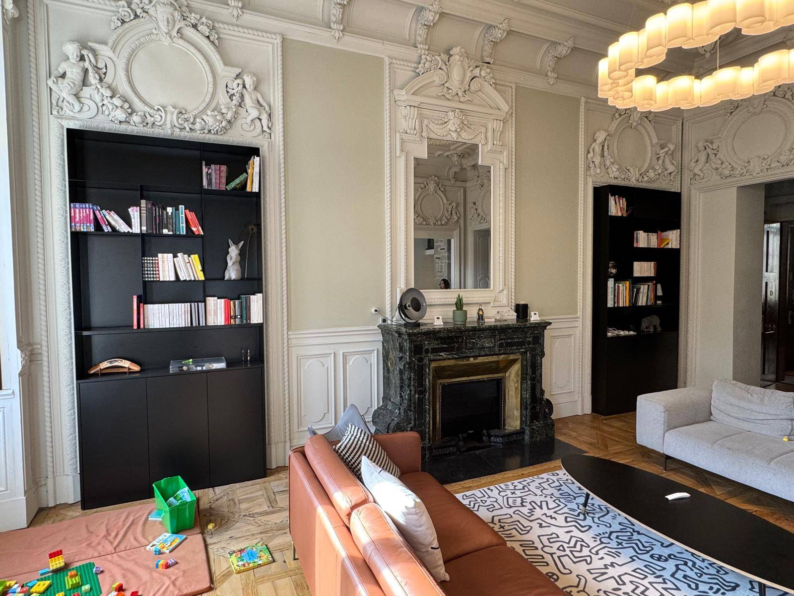 Chaque bibliothèque est conçue sur mesure pour s’intégrer parfaitement aux niches, aux murs moulurés ou aux décors les plus exigeants, tout en affirmant une esthétique contemporaine forte.