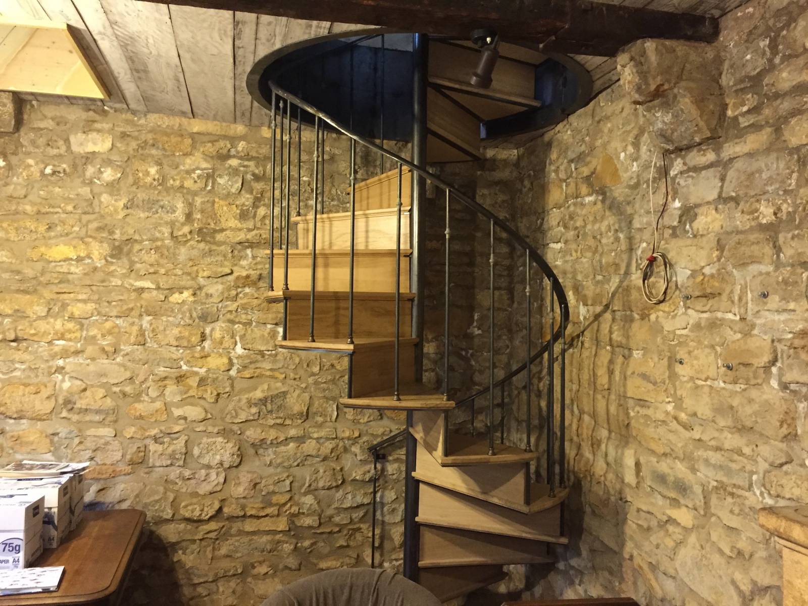Le client souhaitait dans sa maison à Grenoble donner un accès à son étage, sans que la structure dénature les belles pierres qui jonchaient le mur de son intérieur.