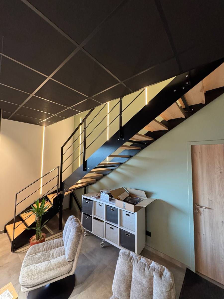 Chaque escalier est réalisé selon vos contraintes techniques et vos envies esthétiques : dimensions, hauteur de marche, largeur, finitions du métal, essence de bois, type de garde-corps, intégration de l’éclairage ou encore choix des teintes murales. Vous bénéficiez ainsi d’un escalier personnalisé, parfaitement adapté à votre espace.
