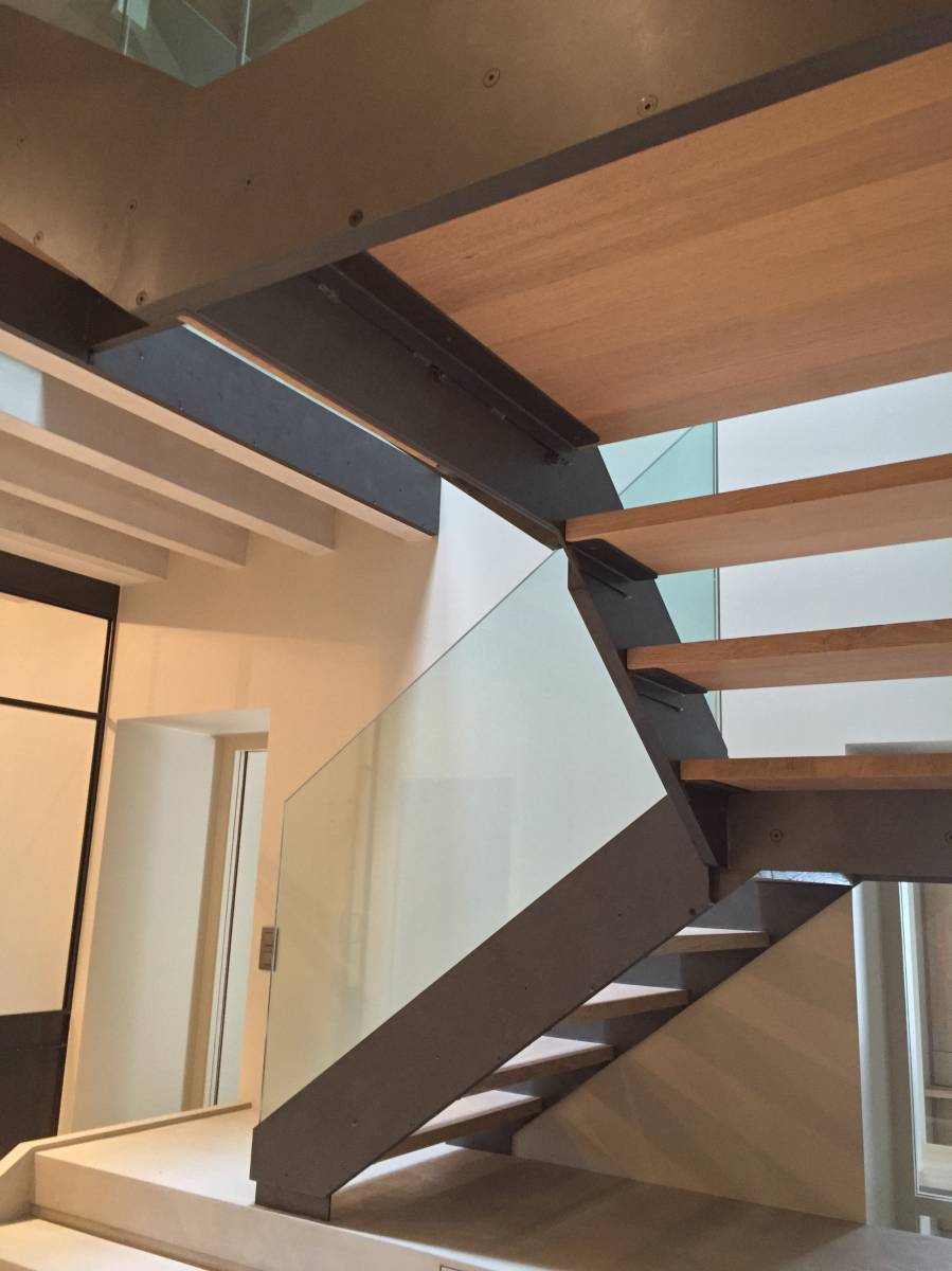Cette structure possédant différents paliers, relie les étages de votre maison, en apportant élégance et chaleur grâce à l’acier et au bois, tout en soulignant subtilement les lignes de l’habitat par l’intermédiaire de garde-corps en verre transparents. L'escalier, un élément primordial dans l'agencement d'un espace. Il doit être adapté et esthétique.
