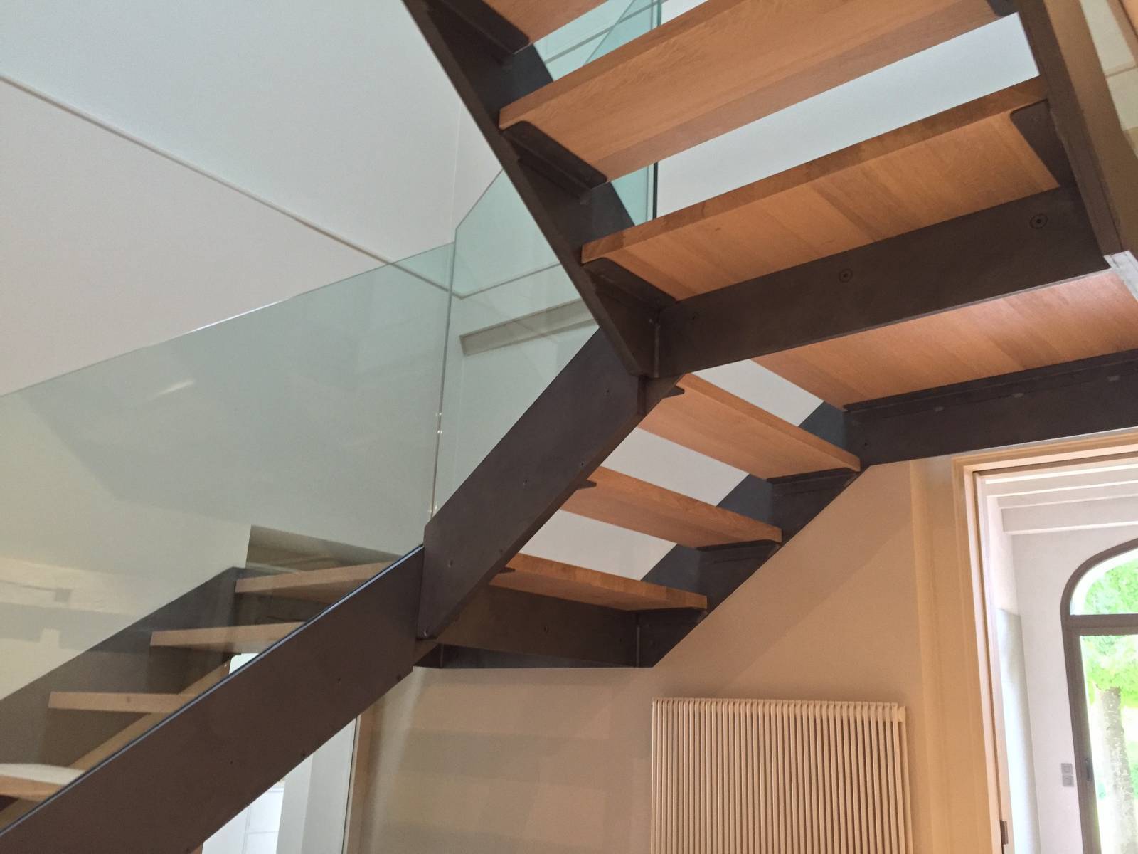 Si votre espace intérieur vous le permet, faites comme notre client situé à Oyonnax en optant pour un escalier en acier avec des marches en bois de chêne.