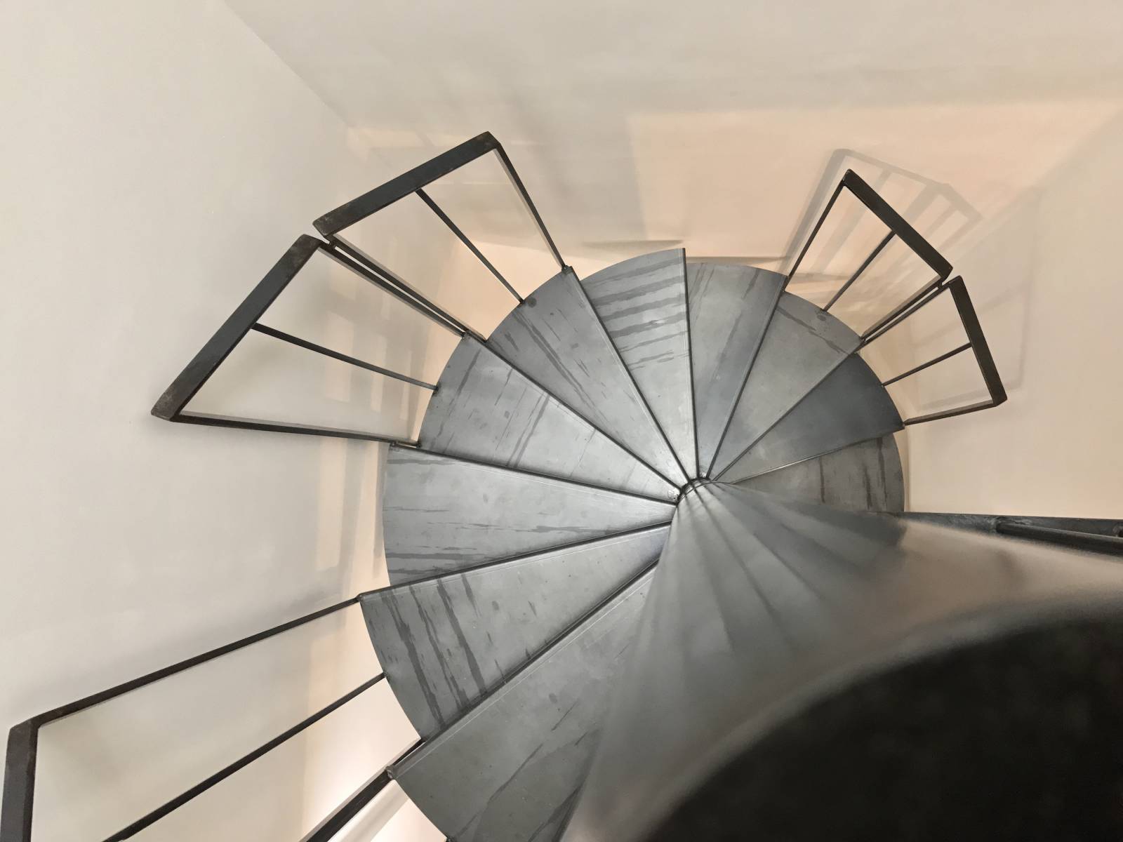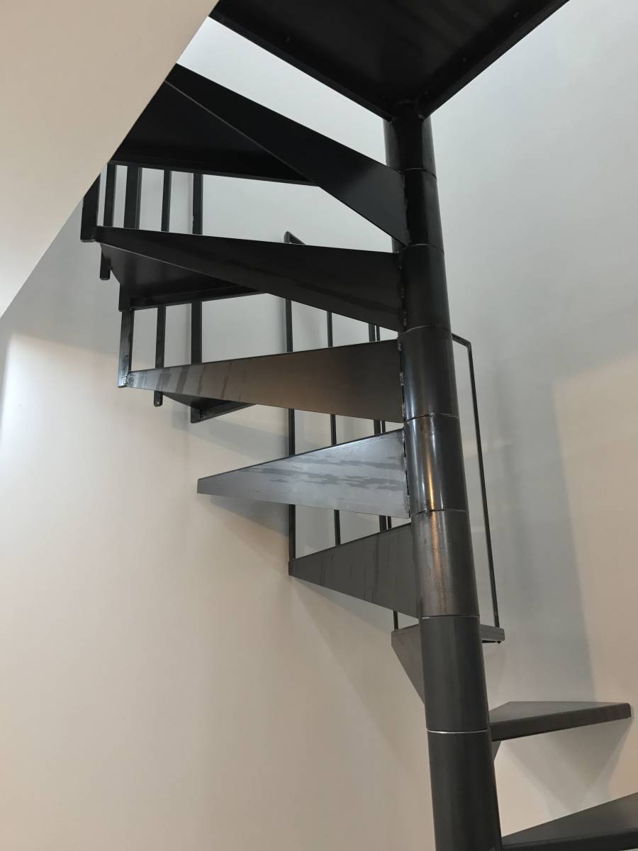 Les garde-corps discontinues confèrent à l’escalier en acier, un design personnalisé et unique. L'escalier en colimaçon est une structure très pratique qui permet d'optimiser l'espace de façon conséquente.