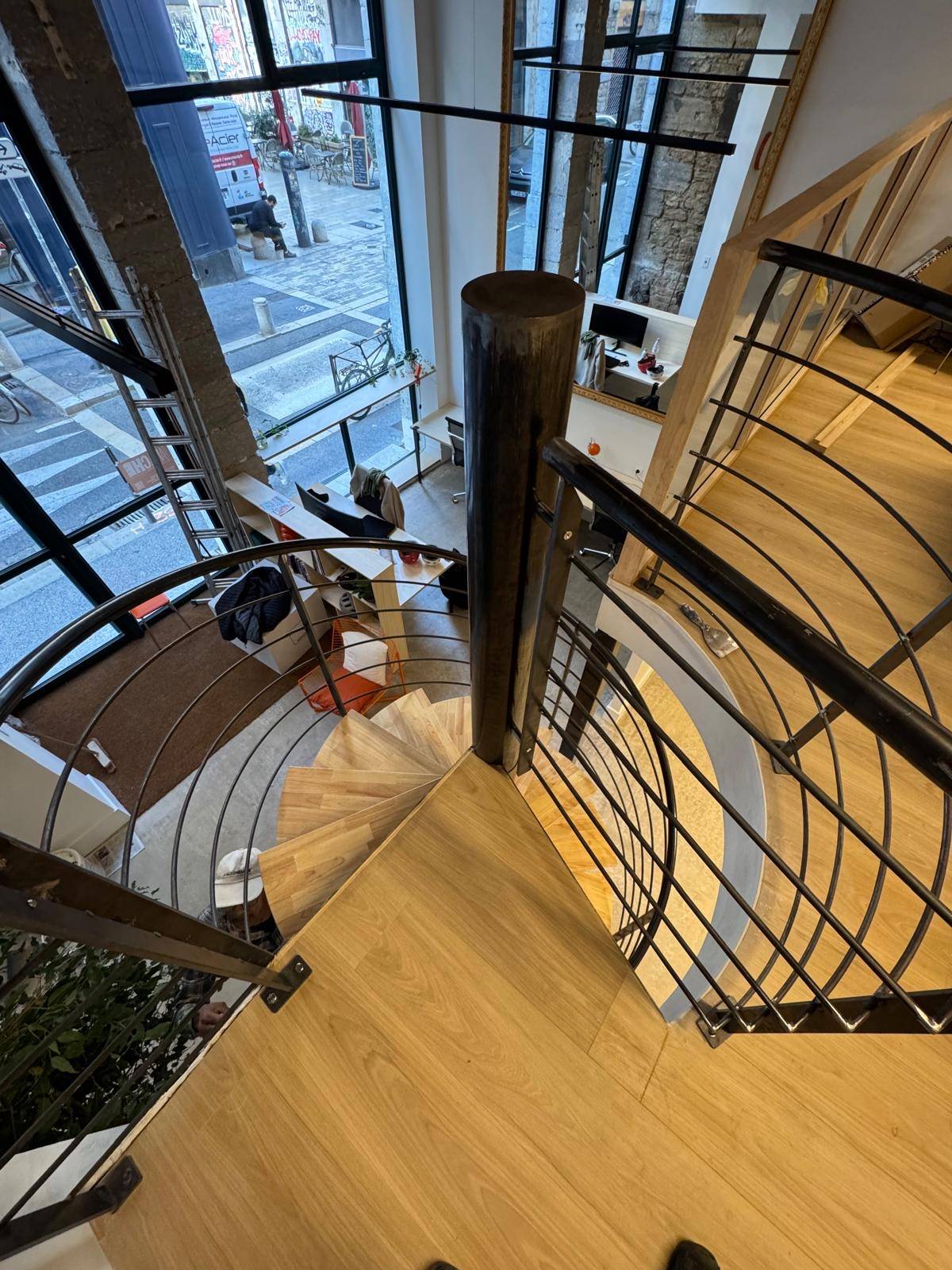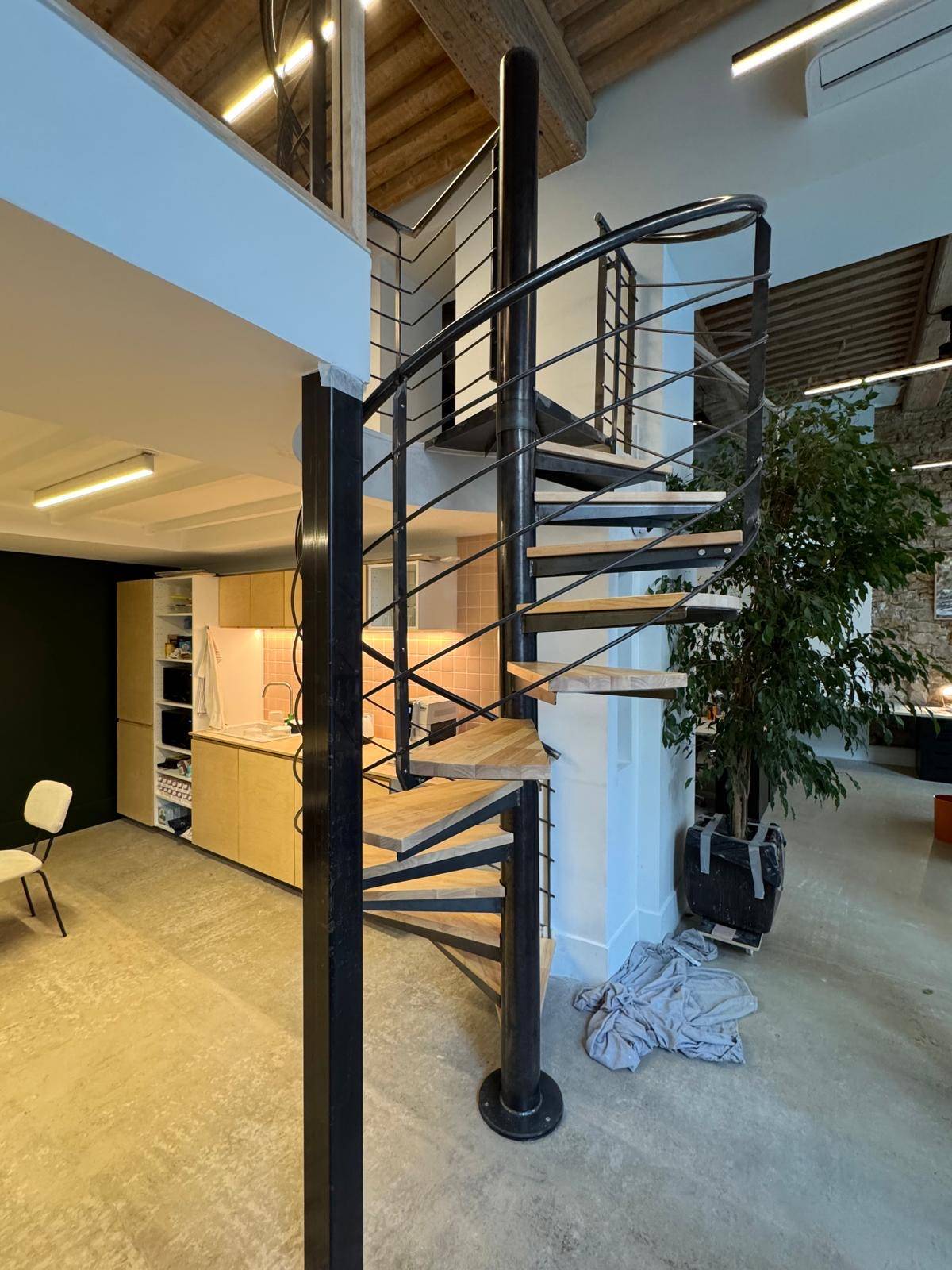 L’escalier s’inscrit naturellement dans le lieu, sans jamais l’alourdir, tout en affirmant une présence forte.