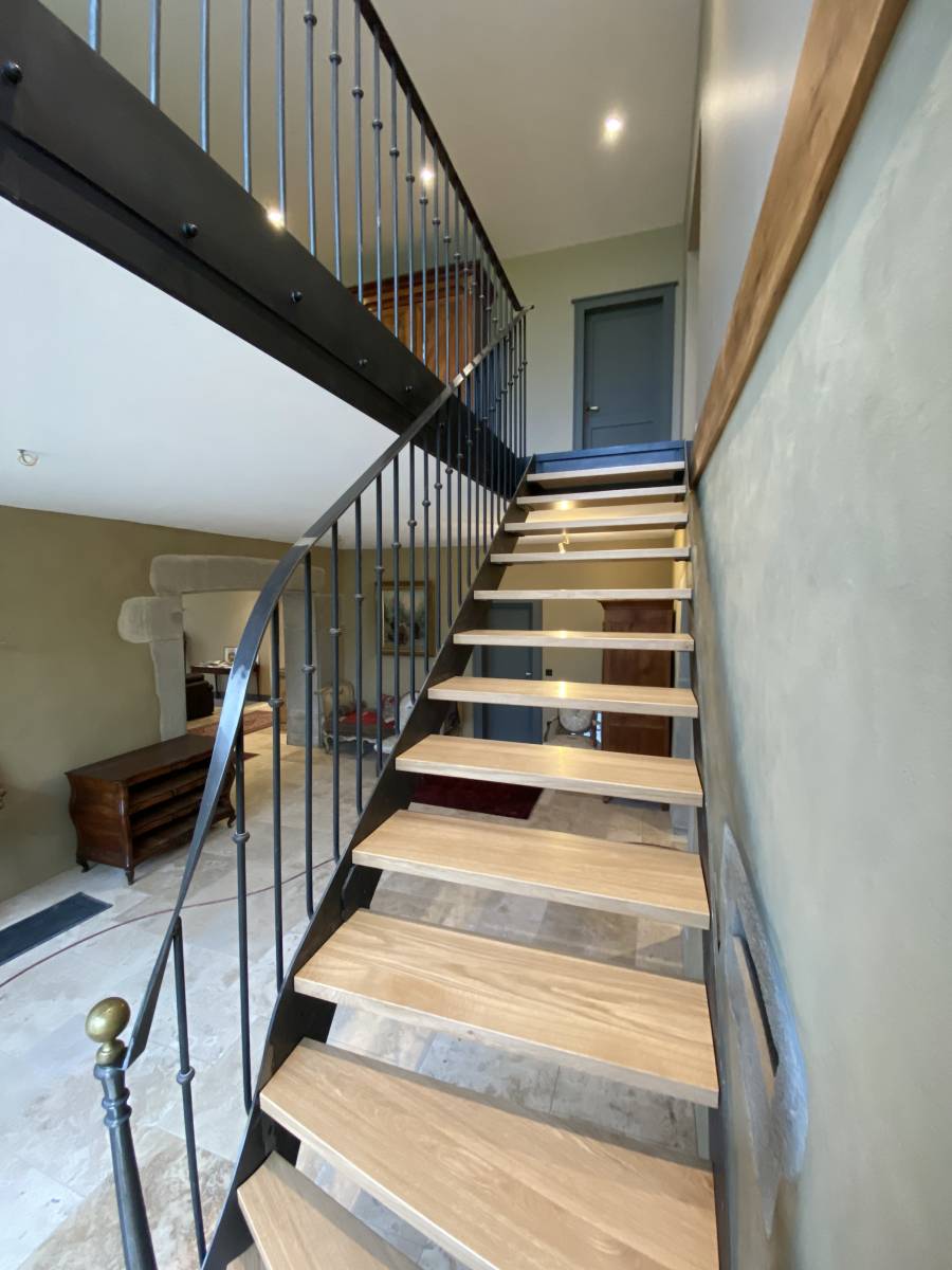 La conception, fabrication et pose d'un escalier en acier sur mesure réalisé par nos soins.
