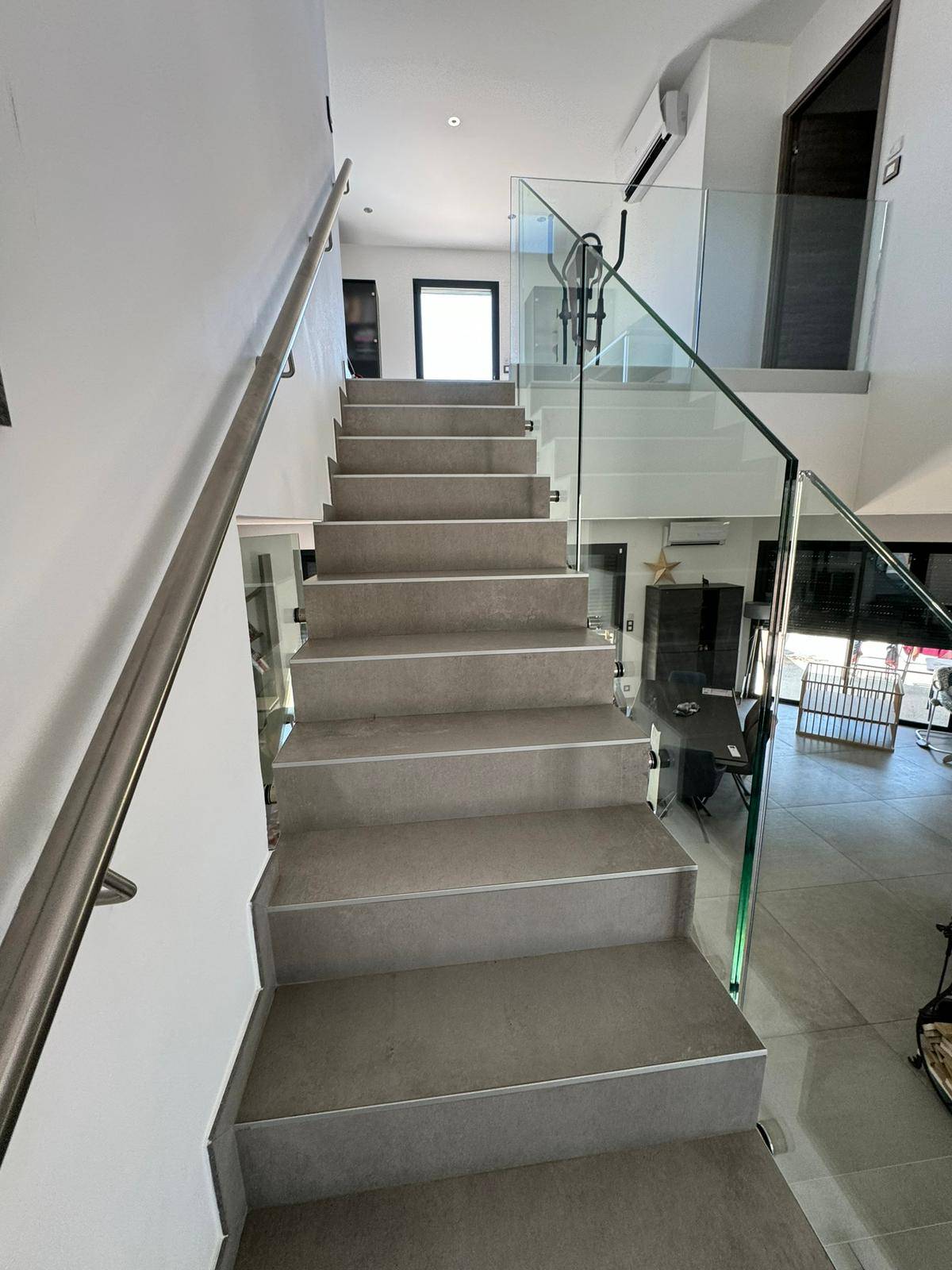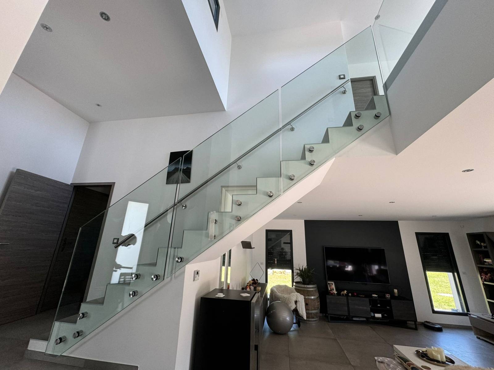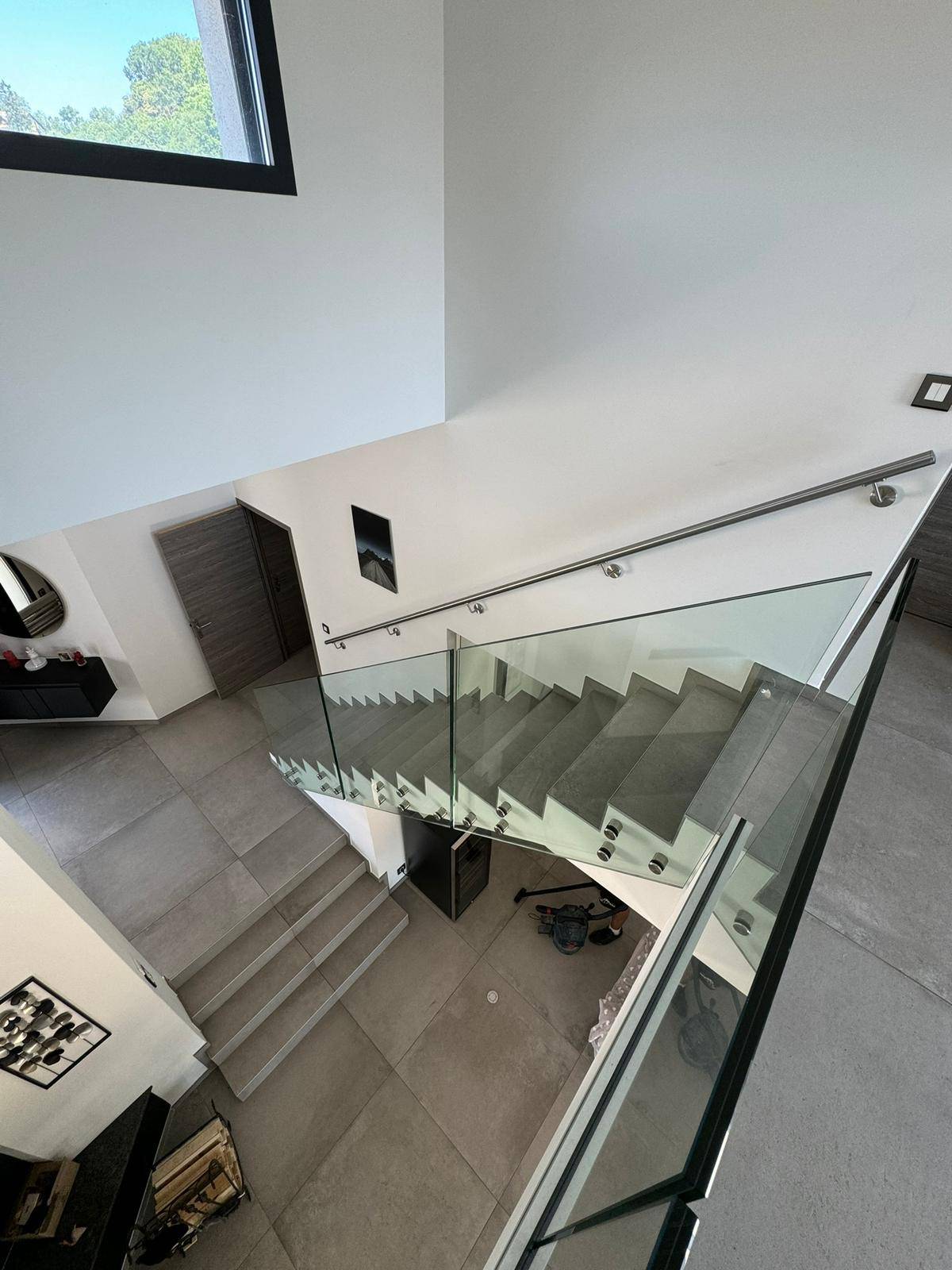 Une réalisation où la pureté du verre s’harmonise parfaitement avec l’architecture intérieure, apportant lumière, légèreté et modernité à l’espace.