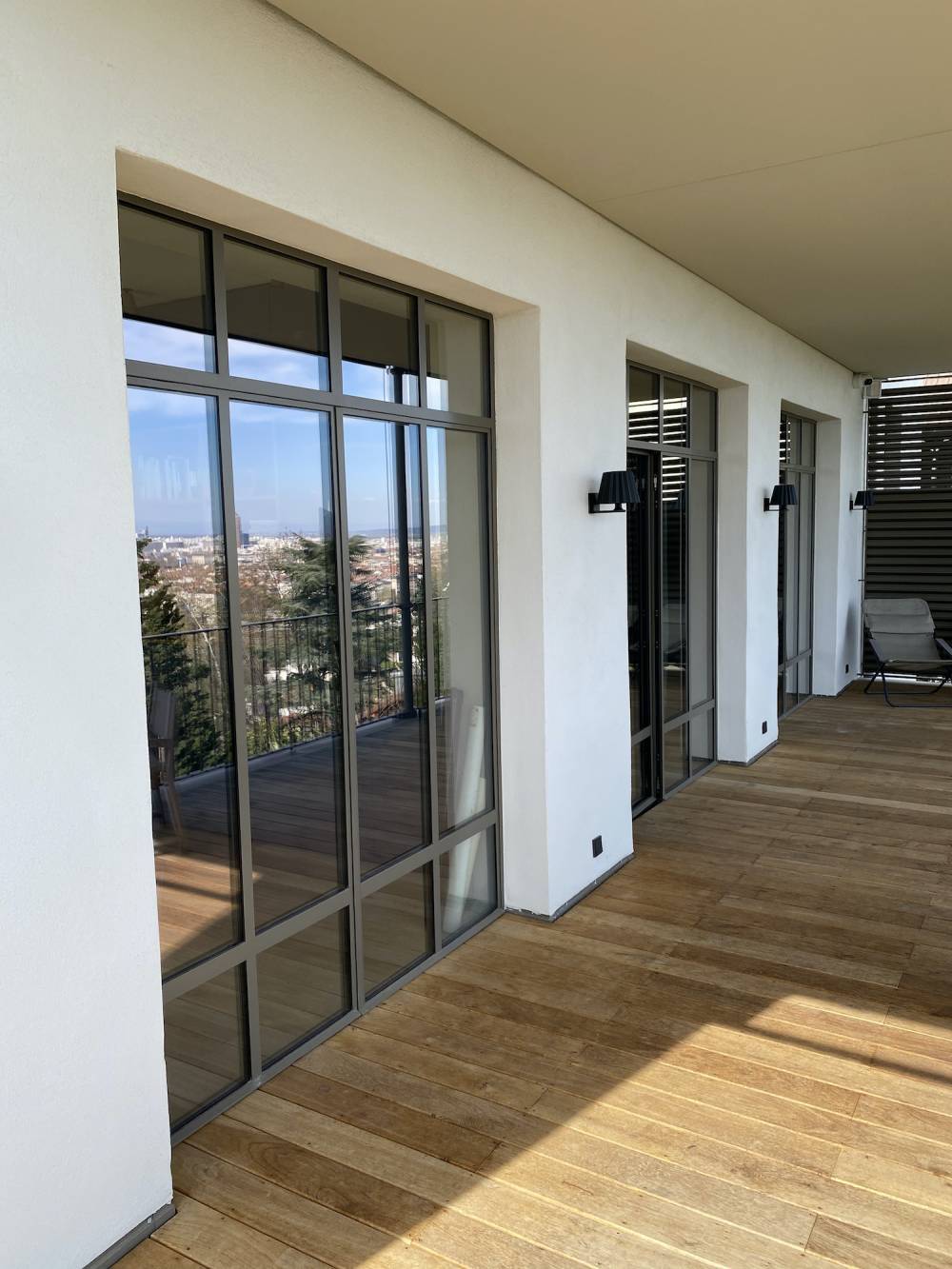 Sur les hauteurs de Sainte-Foy-lès-Lyon, Créacier a récemment mené à bien un projet complet de menuiseries en acier à rupture thermique, illustrant parfaitement notre savoir-faire dans la fabrication haut de gamme, la précision artisanale, et l'intégration architecturale soignée.