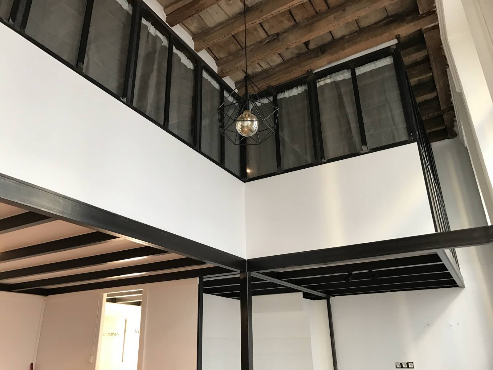 Dans ce superbe studio lyonnais, refait à neuf, CreAcier est intervenu pour créer une mezzanine métallique et un escalier en acier. L’idée était de créer un espace de nuit dans la partie supérieur de la mezzanine.