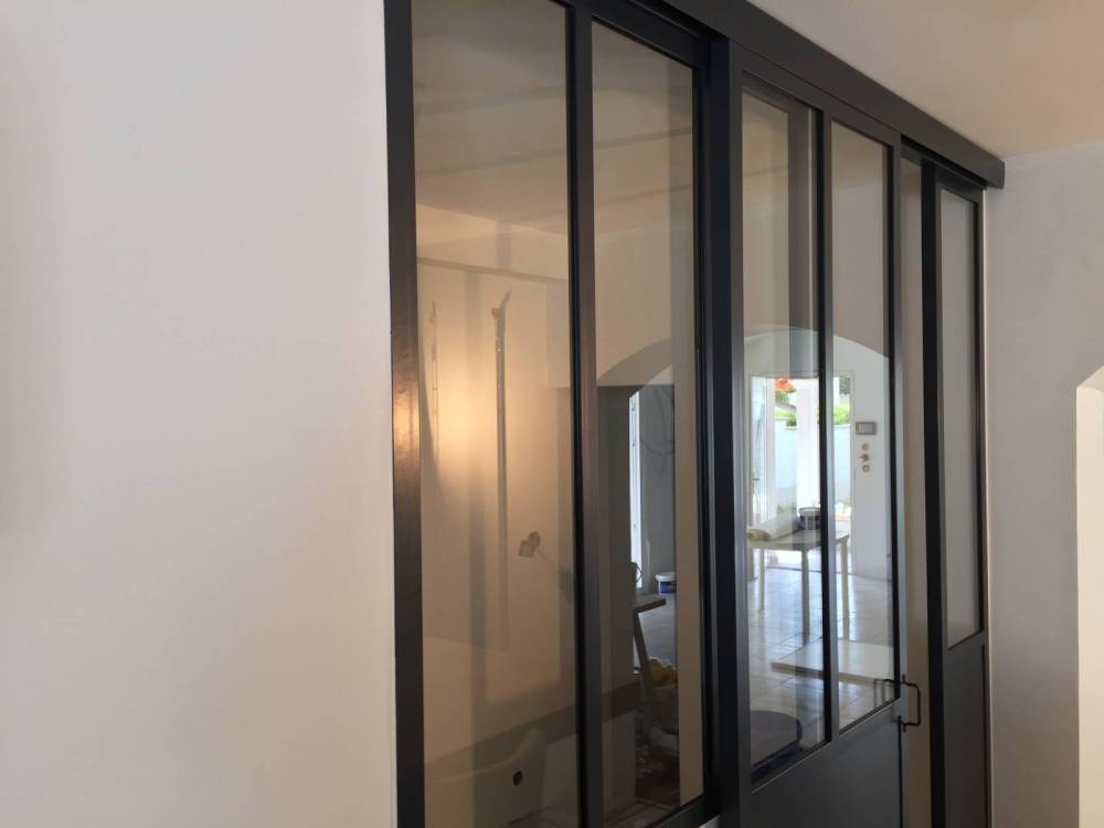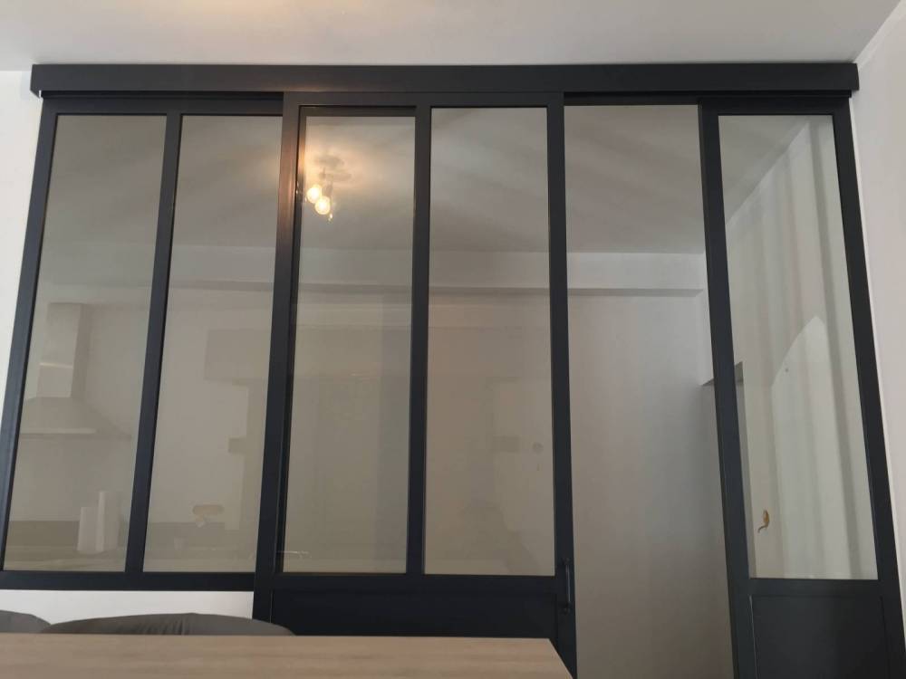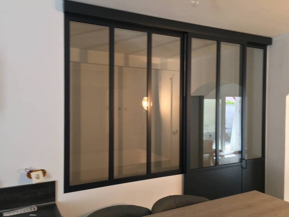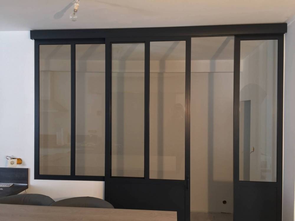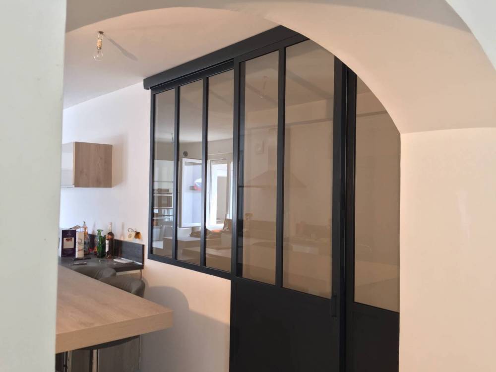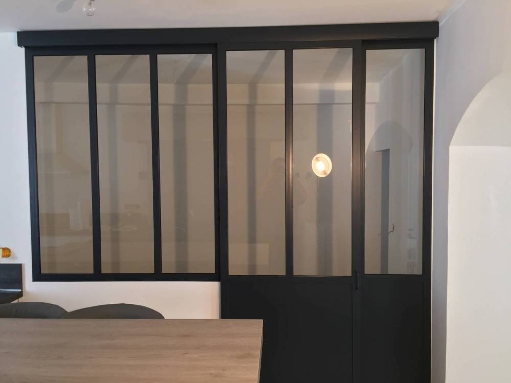 Optez pour une verrière intérieure à porte coulissante entre votre cuisine et votre bureau, pour supprimer le bruit et les odeurs, en conservant un accès pratique et ergonomique. Admirez les lignes parallèles de l'acier qui s'imbrique dans la transparence de notre verre haut de gamme. Réalisé sur mesure, les portes coulissantes CreAcier conférerons à votre intérieur caractère et design, tout en conservant l'élégance existant de votre intérieur.
