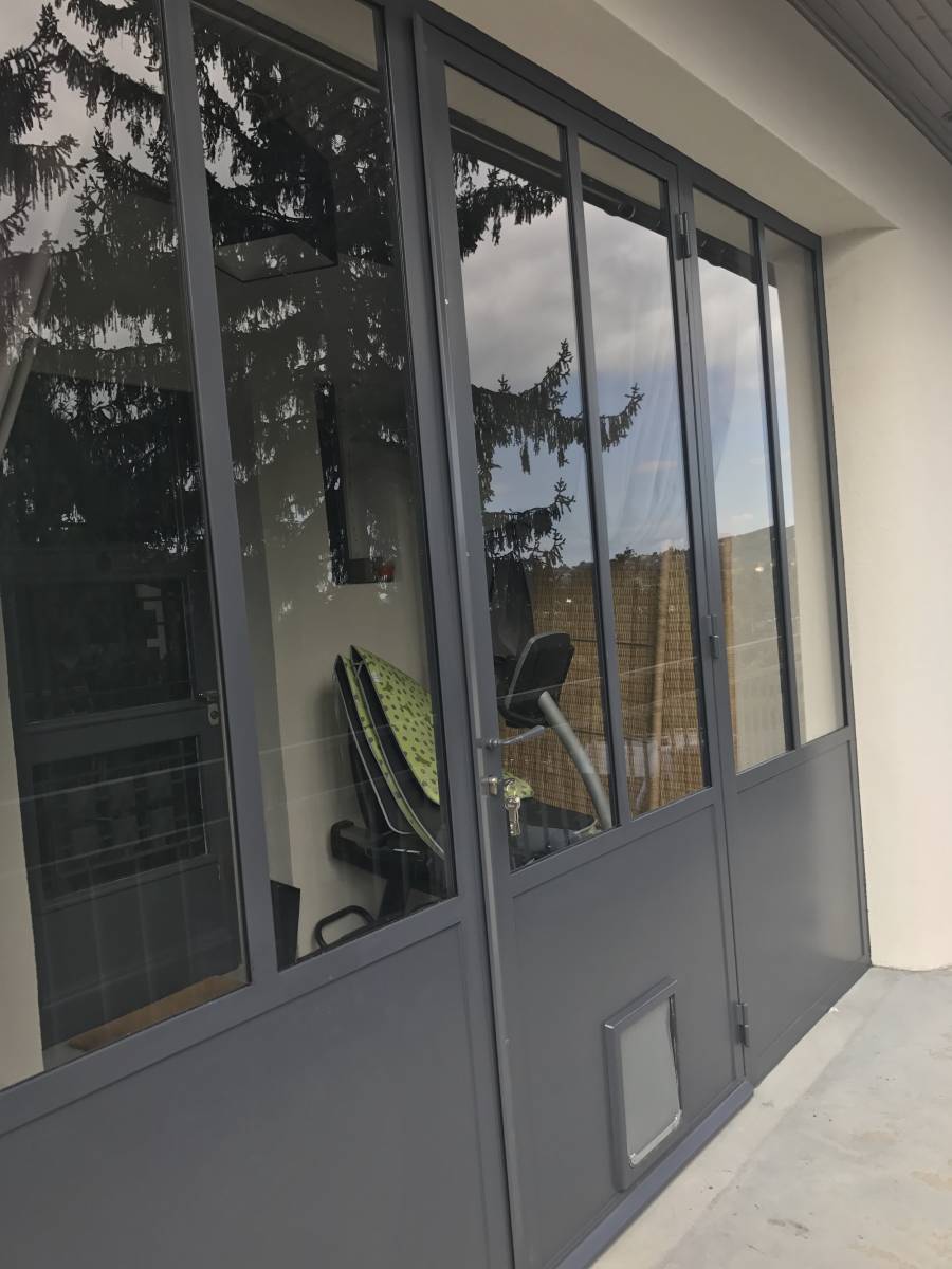 CreAcier est intervenu dans cette maison à Lyon pour l’étude et la pose sur mesure d’une structure métallique type verrière extérieure conférant un accès au domicile esthétique et isolé thermiquement. Même le chat de la maison a son accès personnel.