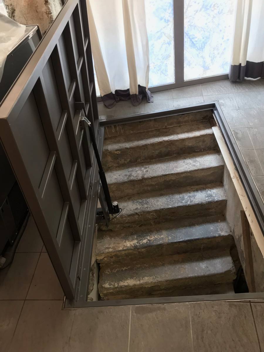 Cette trappe de cave motorisée à vérin hydraulique en tôle acier permet à nos clients d’accéder a leur sous-sol sans le moindre effort physique.