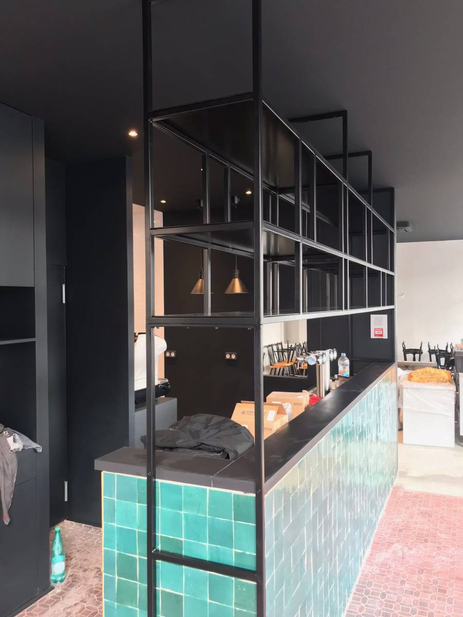 C'est dans ce restaurant le French Fumoir situé à Lyon que nous avons fabriqué et poser un verrier en structure acier thermo laqué au four afin de répondre à l'exigence de notre client.