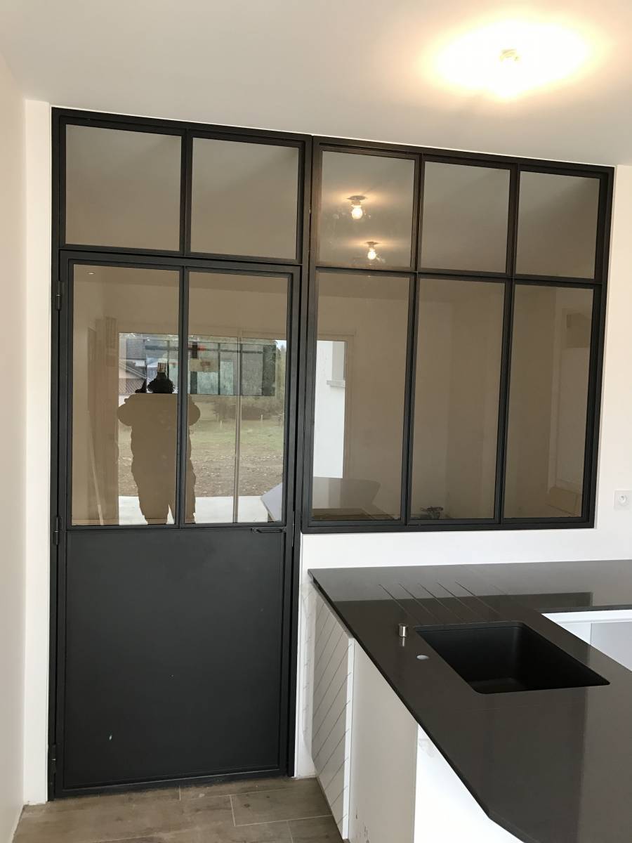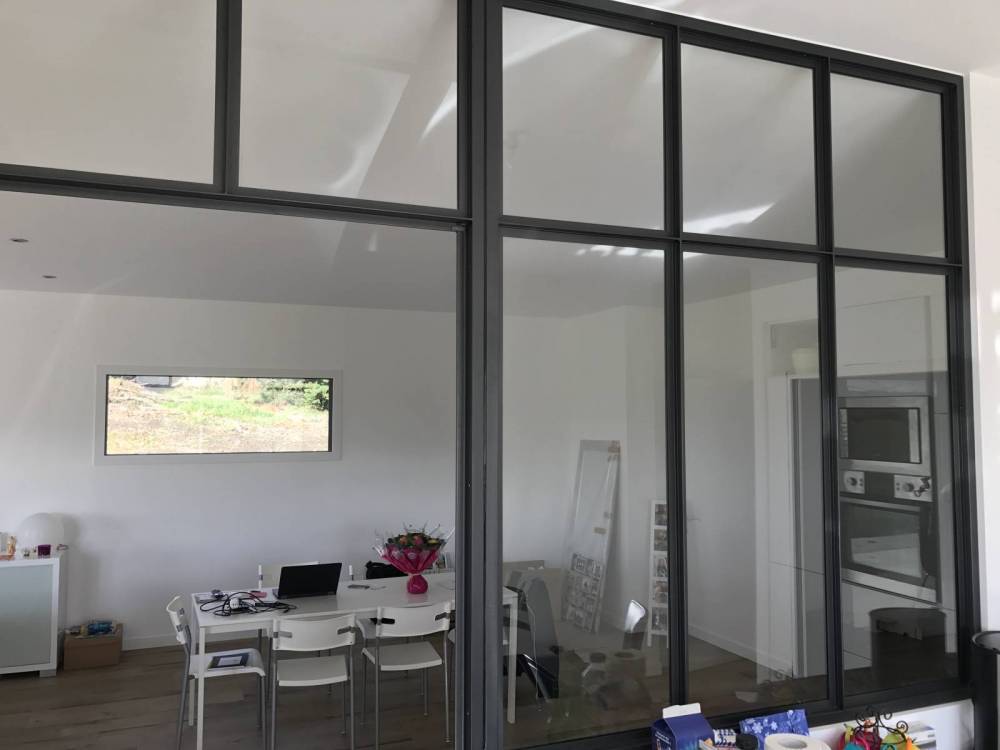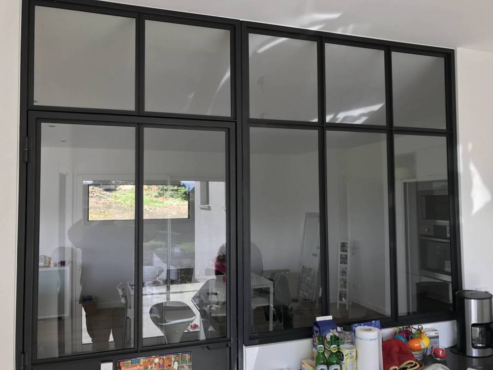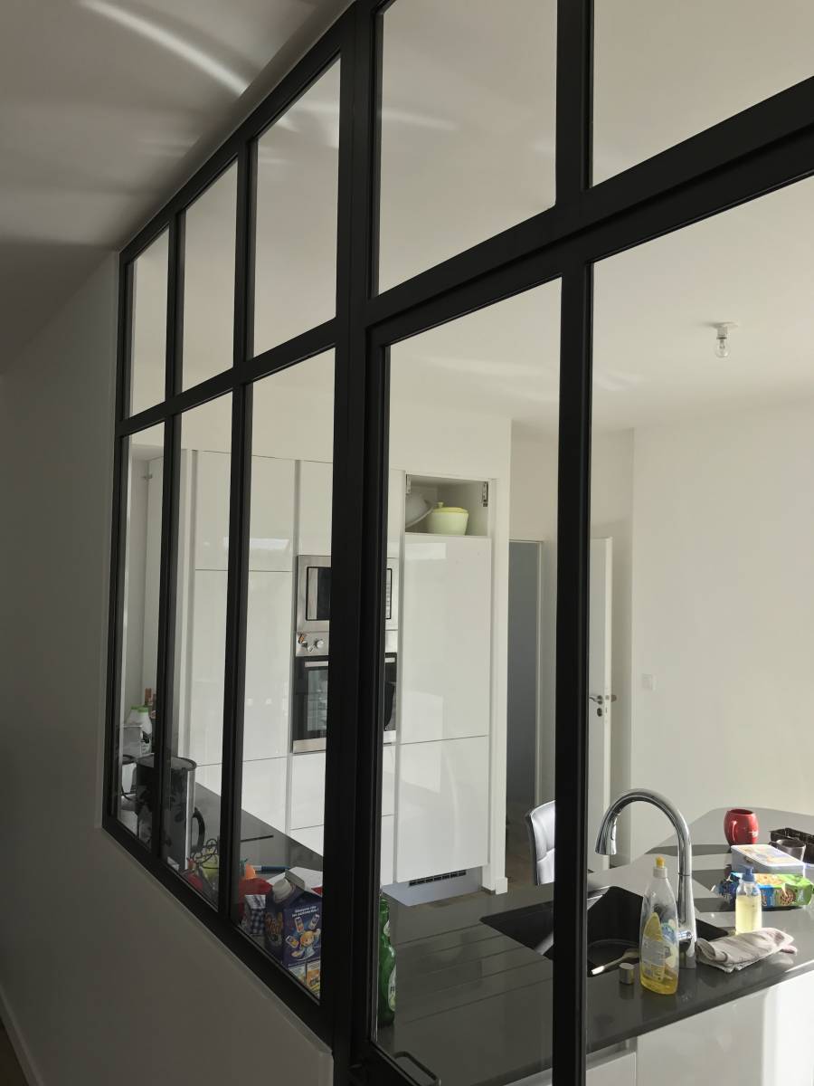 Dans cette habitation nouvelle, CreAcier a proposé au client d’installer une verrière en acier thermolaquée pour isoler sa cuisine du reste de la pièce à vivre. Nous avons procédé à un traitement thermolaqué sur l’ensemble de la structure afin de lui garantir une grande protection et une durée de vie plus longue. Conçue sur mesure, la surface vitrée permet de profiter d’une grande luminosité dans la pièce.