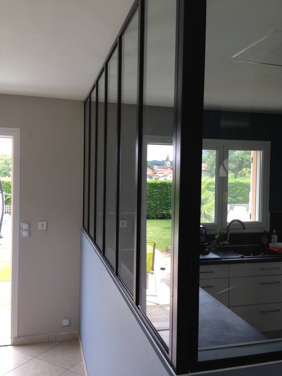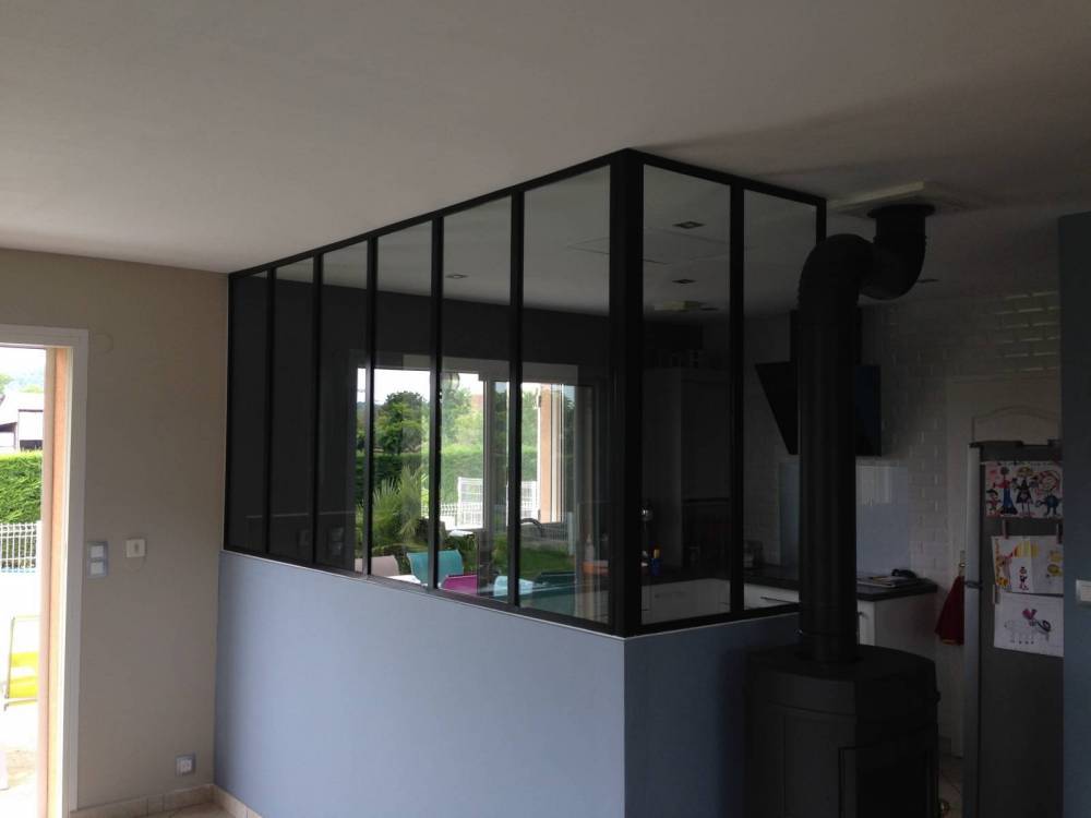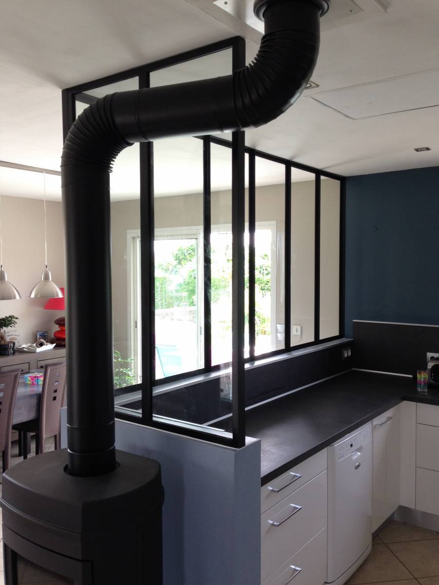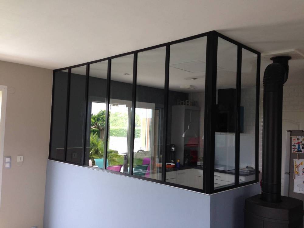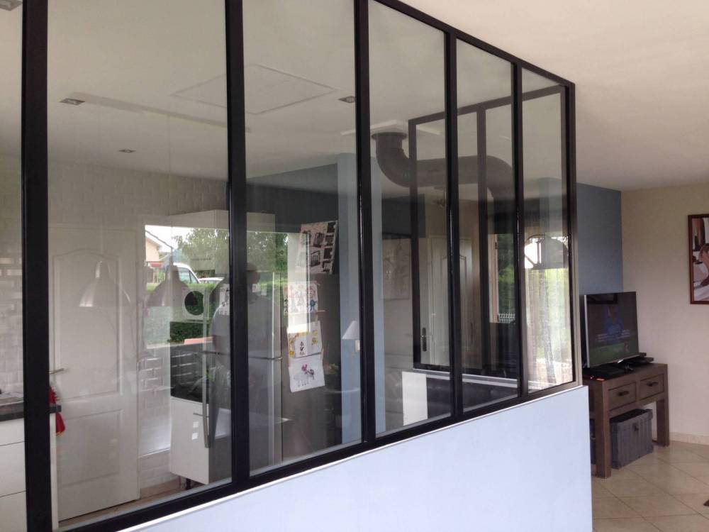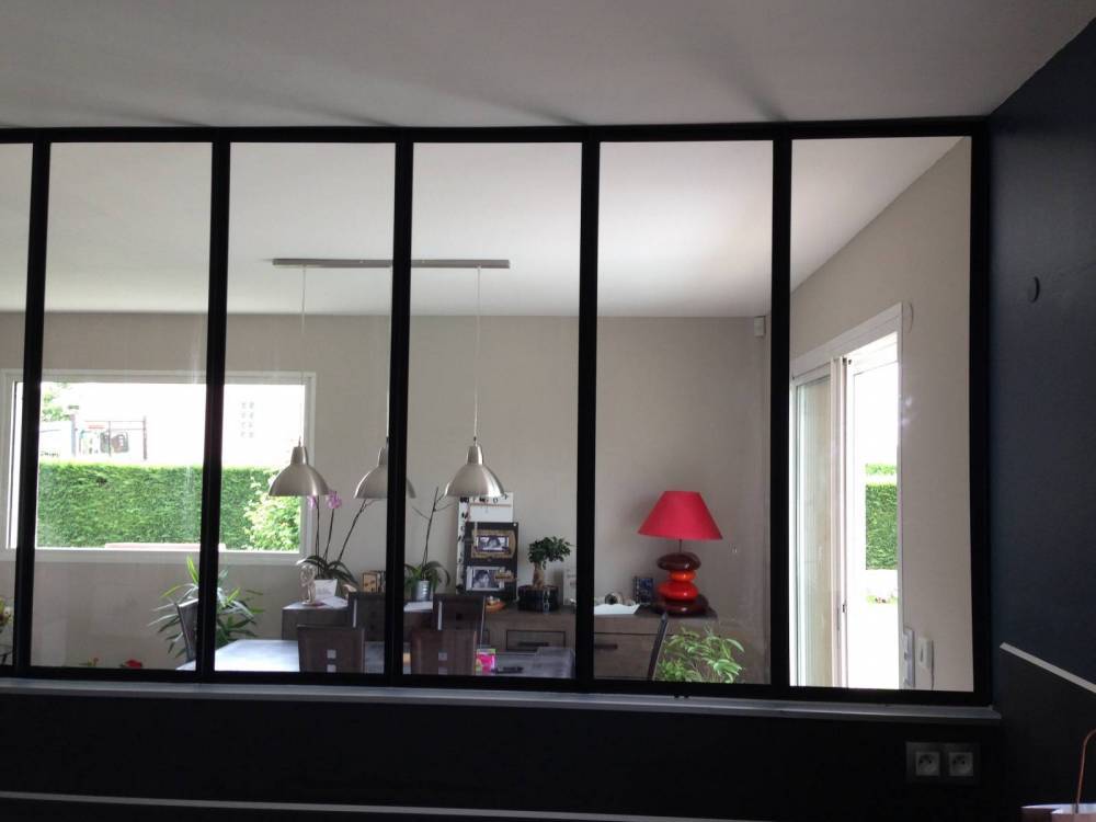 Sur ce chantier, CreAcier est intervenu dans la conception et dans la réalisation d'une verrière d'intérieure en angle afin d'isoler la cuisine de notre client du reste de la pièce à vivre. Cette installation sur mesure confère à l'espace luminosité et design, tout en respectant les formes déjà existantes de la pièce.