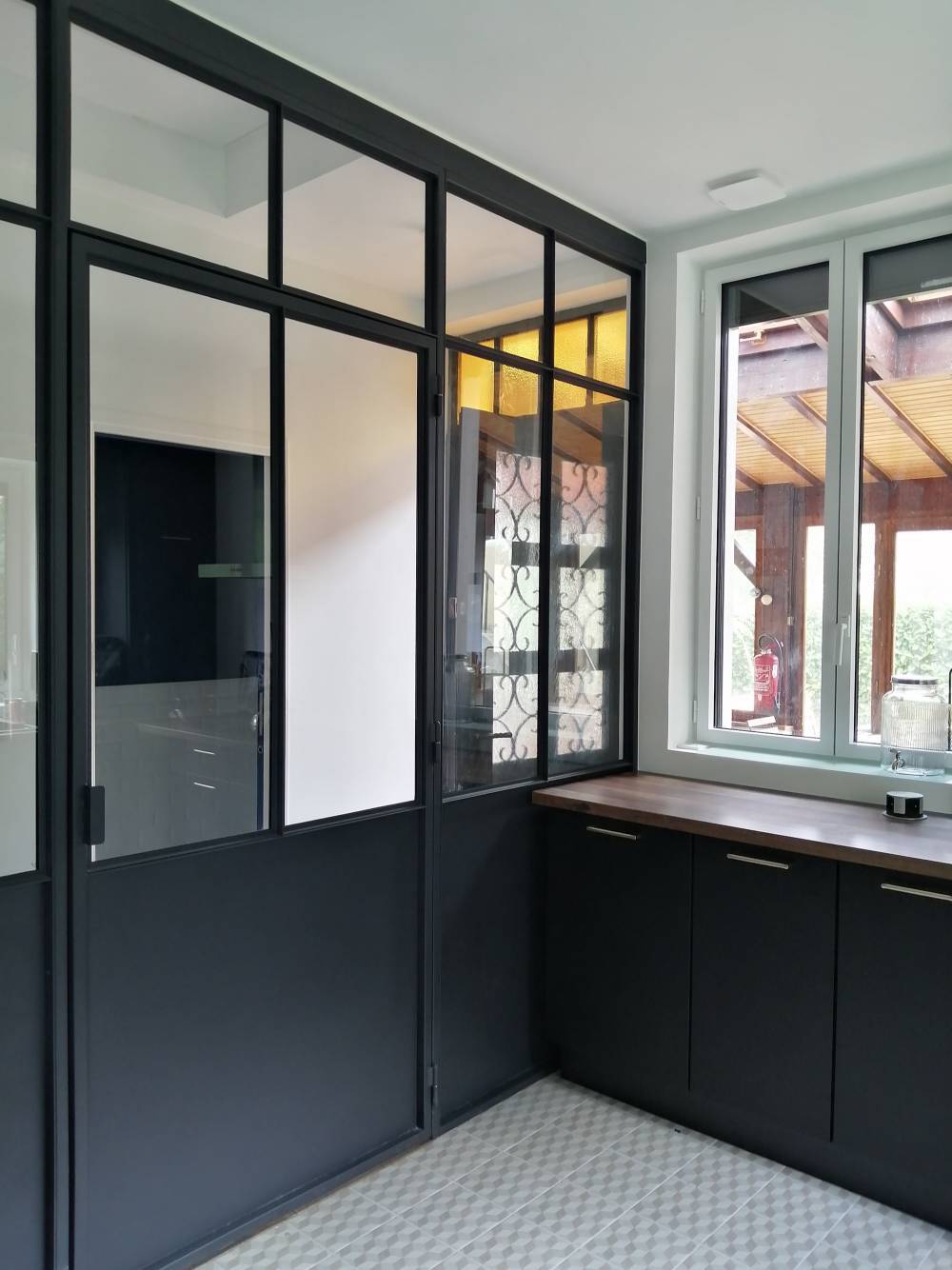 La verrière est équipée de vitrage clair feuilleté 33.2, garantissant sécurité et isolation phonique.