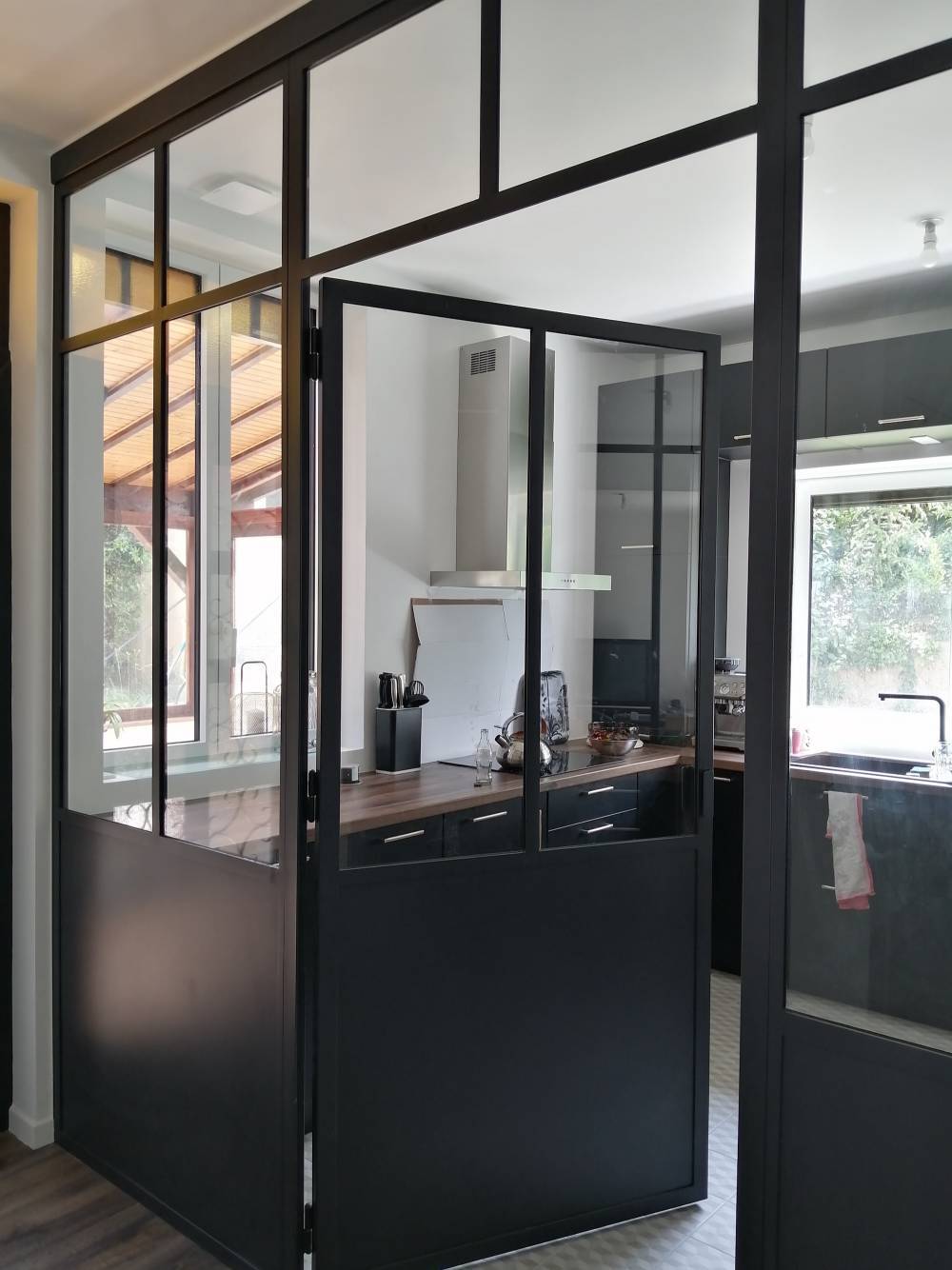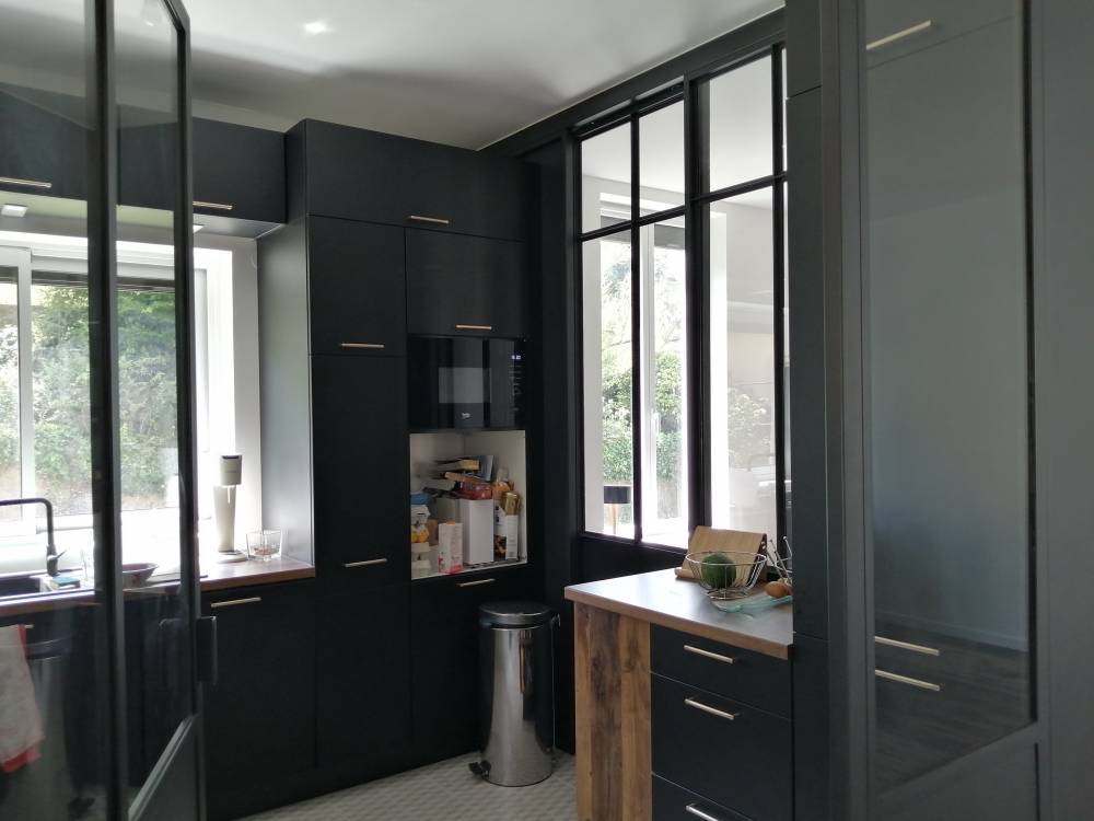 Nous avons récemment réalisé une cloison verrière en acier pour délimiter un espace cuisine dans un salon, tout en conservant luminosité et transparence. Ce projet a été conçu entièrement sur mesure, selon les plans de l’architecte et les choix esthétiques du client.
