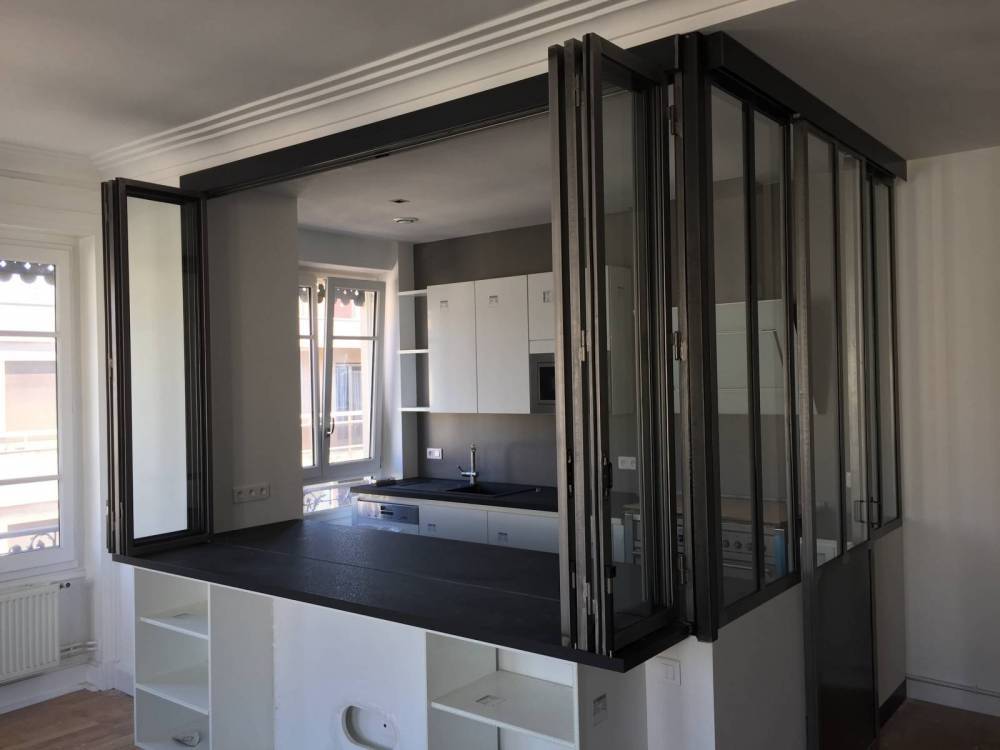 Présent dans la région Lyonnaise et toute la région Rhône Alpes, nous proposons la fabrication d'une verrière intérieure en accordéon qui est très efficace si vous souhaitez communiquer de la cuisine à votre séjour sans vous déplacer.