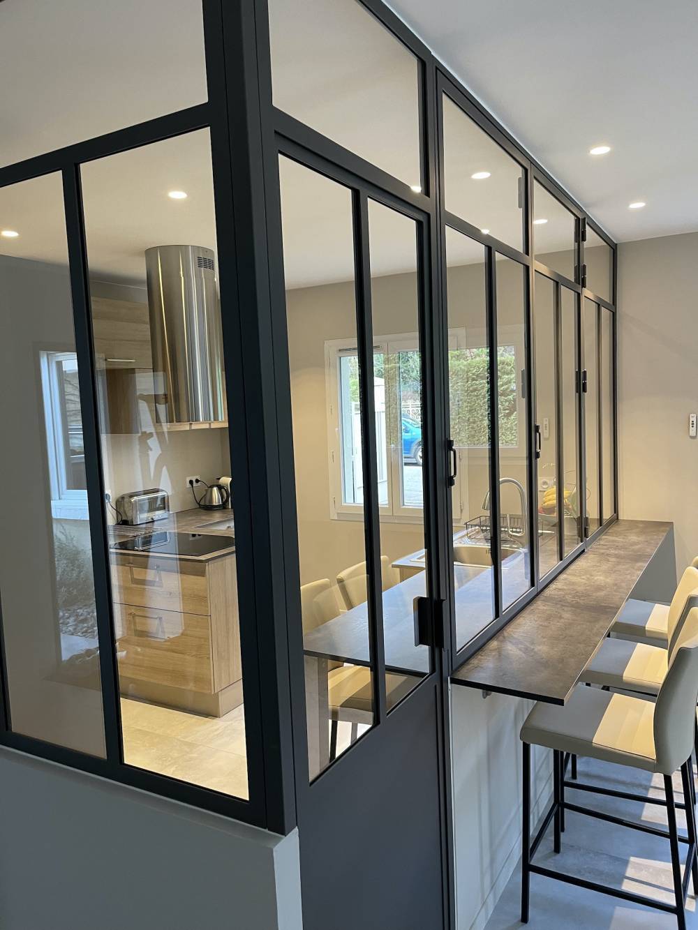 Utilisation de vitrage clair 33.2 feuilleté. Finition de la verrière avec peinture thermolaqué RAL Tapenade.