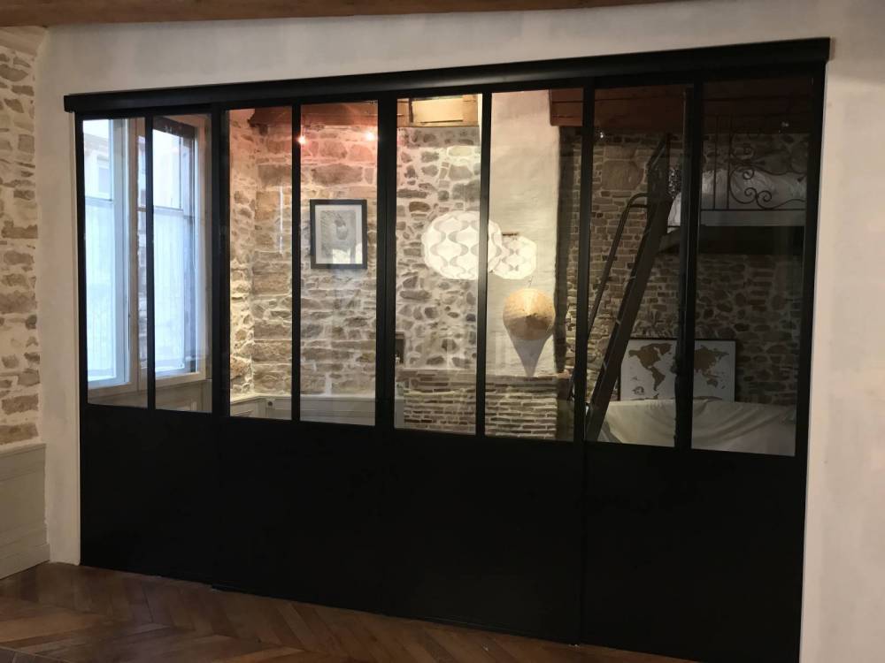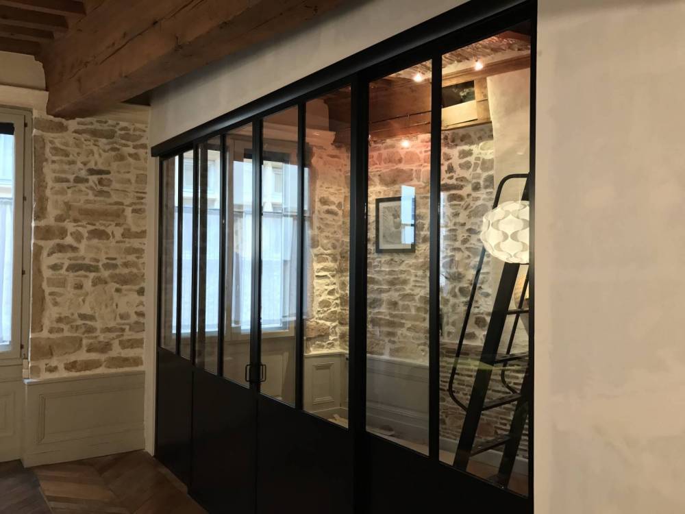 Optez pour une verrière intérieure à porte coulissante entre votre chambre et votre pièce à vivre, pour supprimer le bruit et les odeurs, en conservant un accès pratique et ergonomique dans votre espace. Très efficace avec une ouverture coulissante double vantaux, cette verrière intérieure sur mesure se marie très bien avec les murs en pierre du vieux Lyon, apportant à l'espace caractère, robustesse et lumière, votre intérieur n'en sera qu'embelli.