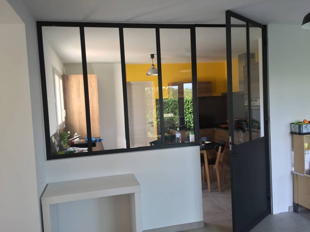 Dans cette belle maison de campagne à Gex, CreAcier a créé deux structures différentes type verrière intérieure.