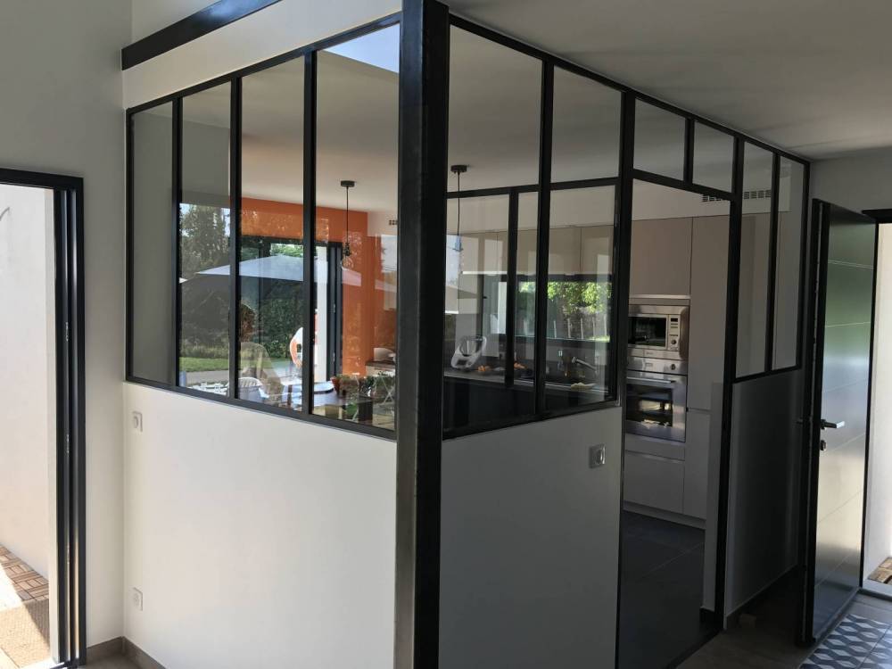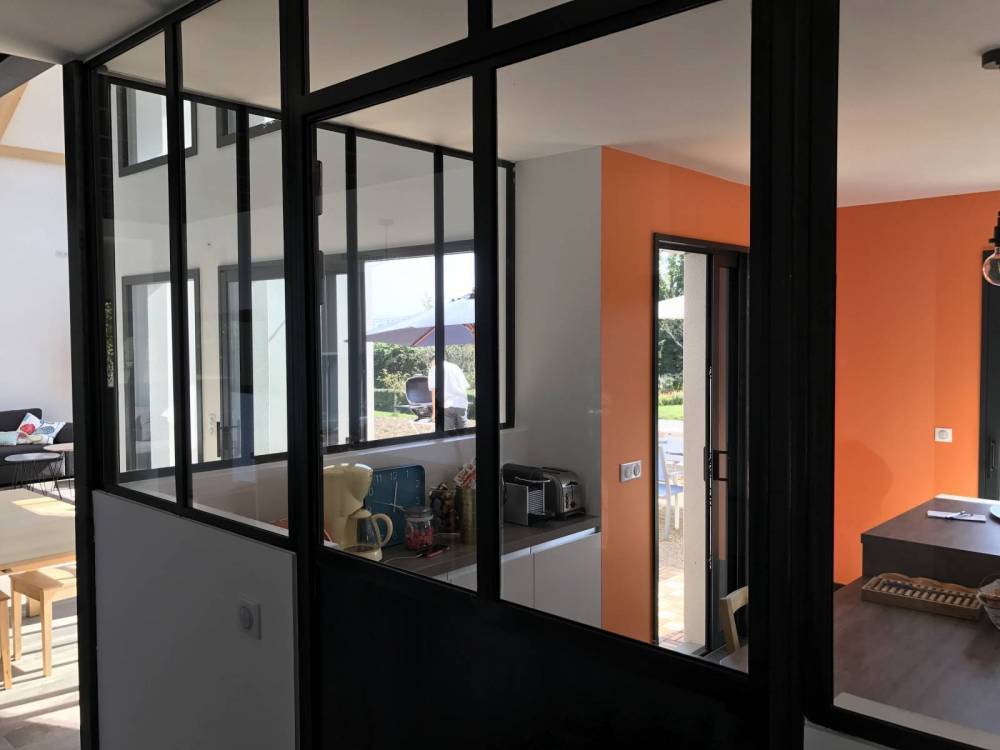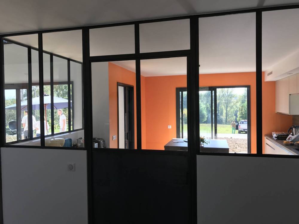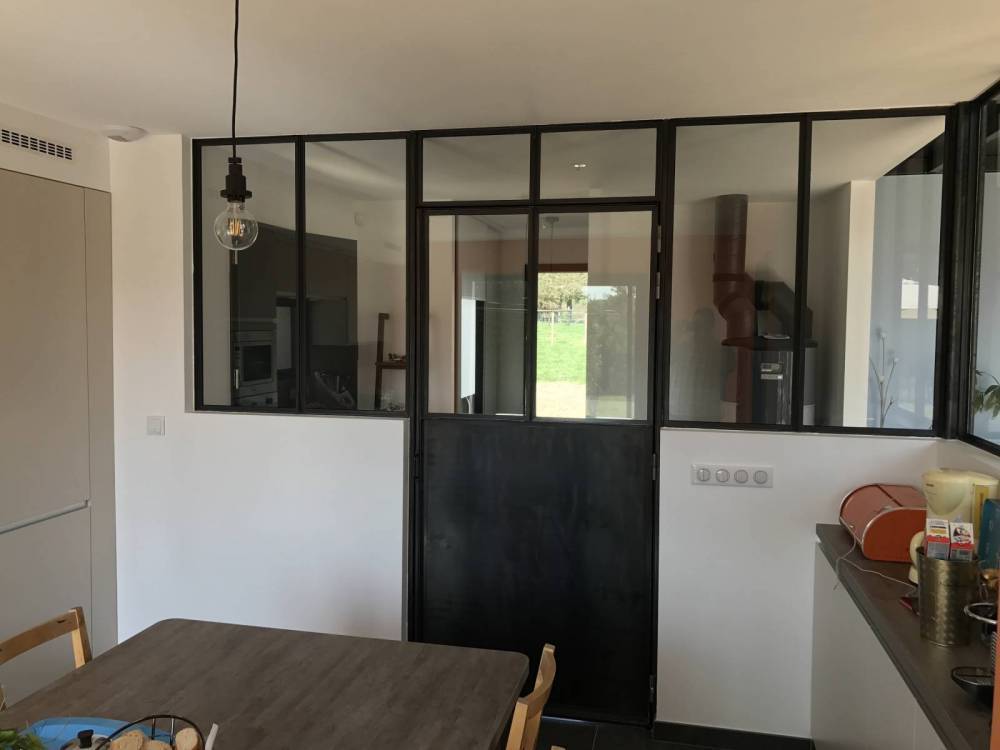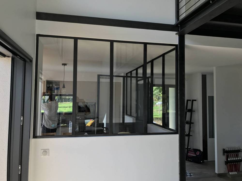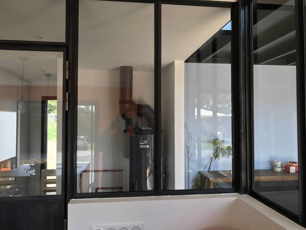 Une finition brute vernie a été choisi par les clients pour cette verrière acier sur mesure près de La Tour Du Pin.