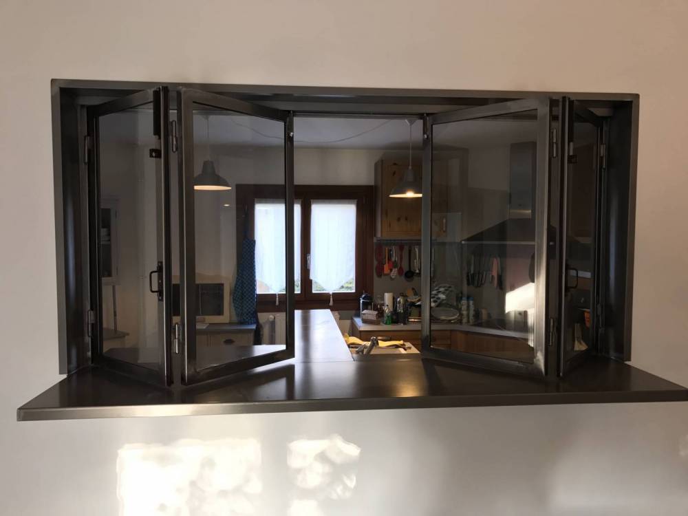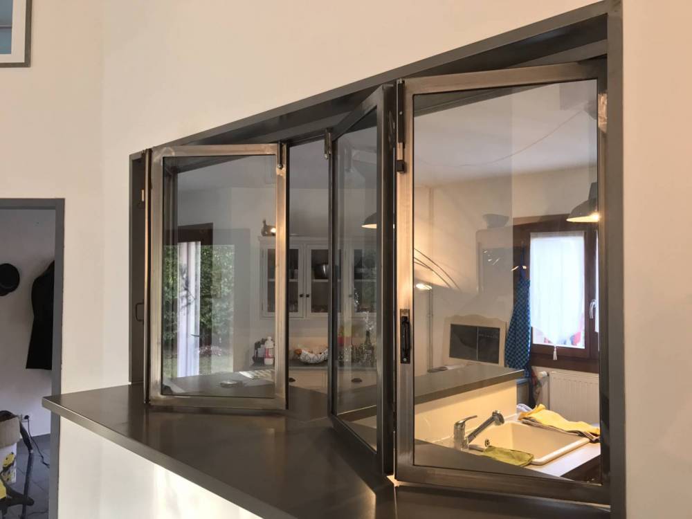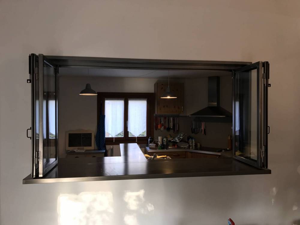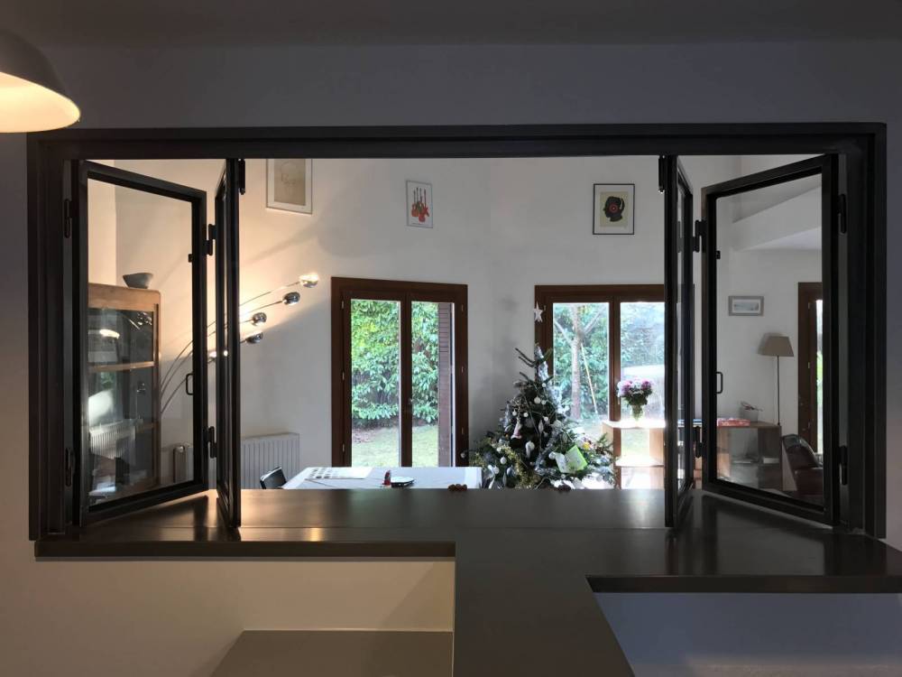 La fabrication d'une verrière intérieure en accordéon est très efficace si vous souhaitez communiquer de la cuisine à votre séjour sans vous déplacer.